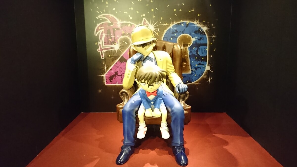 青山老師專為連載二十周年紀念、特別製作的「柯南x新一」等身公仔在入口處迎接大家。由於柯南和新一不曾在漫畫內同時登台,因此只有在展覽裡才能看到他倆一起現身的畫面,這是非常難得珍貴的。