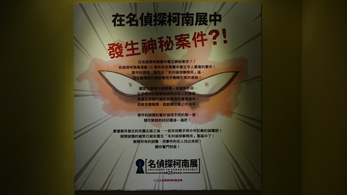 開展至今已一個多月,展場有大型公仔可以拍照、珍貴手稿能欣賞,更特別的是還有推理解謎,也能體驗漫畫內的犯罪手法,這麼有互動性的「名偵探柯南展」,就趁過年前帶大家一探究竟吧!