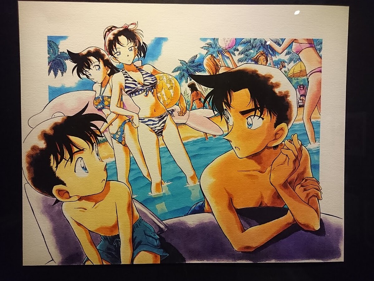 在「作者青山岡昌手稿區」中,一共展出112幅青山老師珍貴手稿,其中包含許多季節限定圖像,像夏日泳池畔戲水或秋季落葉紛飛的場景。聽說青山老師為了要描繪出當時最流行的女性泳裝款式,還特別買了時尚雜誌來研究。更多關於老師創作時的小故事、顏色技法與構圖考量,都能在此展區中一覽無遺。