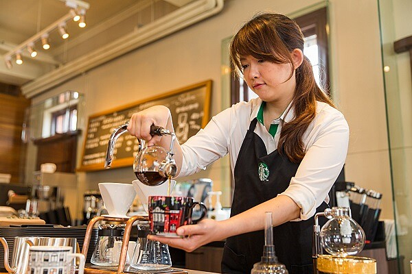 3. 體驗式吧台:參考原先林宅1F販賣部舊址,以緬柚實木打造首座體驗式吧台(Experience Bar)。除導入手沖服務,更引進全台首家星巴克虹吸式調理咖啡,重現過往慢活的迷人生活態度。