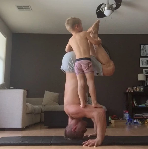 這位名為Wayne Skivington的IG人氣王是個單親帥爸,現在28歲,有一個3歲的兒子Rowan,平常他會和兒子一起合體,做許多超高難度的動作,不管是背在肩上、倒立,或是讓兒子站在手掌上舉高高完全沒問題,父子倆合作無間,從他們的互動中更可以感受到滿滿的父愛,短短時間他的追蹤人數已經破好幾萬。