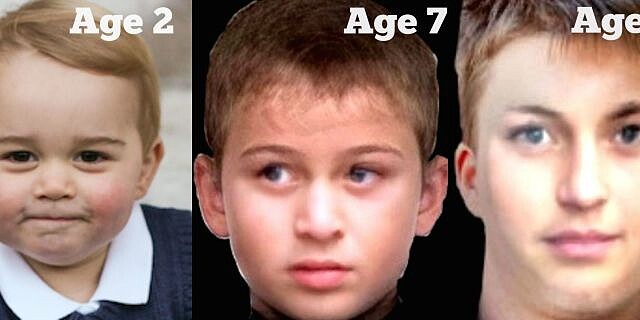 喜歡做研究的英國 Bradford 大學科學家,就以“增長年紀(Ageing)”軟體科技,推算出喬治小王子長成男孩、長成青年,甚至是年老的模樣!