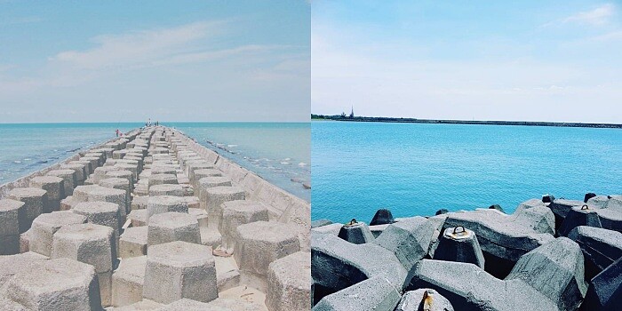 海邊都會有的消波塊,不論是隨意排列或井然有序的樣子,都能拍出天海連成一線的美圖。