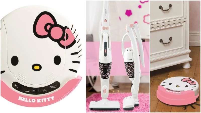 日本品牌ecomo與日本三麗鷗Hello Kitty合作,推出兩款可愛又實用的吸塵器,手動、自動清掃都像魔法般輕鬆。