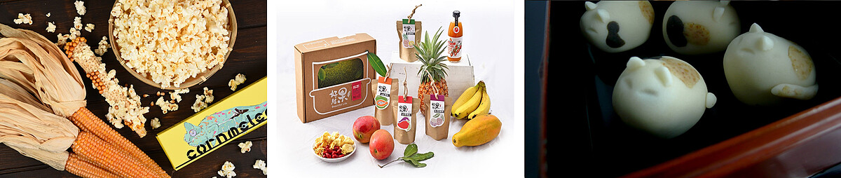 除了有梗的爆米花,許多品牌創意都讓人眼睛一亮。「好結果」跳脫傳統果亁作法,選擇製作「太空食物」的「真空冷凍乾燥技術」,並推出玉荷包、木瓜果乾等獨特口味;美學與味覺交織的「珍珠菓子」以手作精神、在地食材,製作出精緻可愛的「菓子貓」,以小火煉煮白豆沙、香濃紅豆泥內餡,賞玩食用兩相宜。除了創意美食,食器設計也是亮點。「拜訪森林」主打橄欖木製食器,以無拼接實木為主,強調不上漆、耐潮濕,經年累月的木紋醒目獨特,每一件食器都像是一幅畫作;創意插畫品牌「1G」則用幽默畫風為愛喝珍奶的你打造「心甘情願為你胖 絹印飲料提袋」,響應減塑做環保。