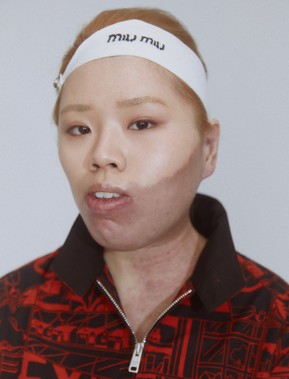 (Logo 頭帶,Miu Miu;漫畫圖樣夾克,Prada。)
