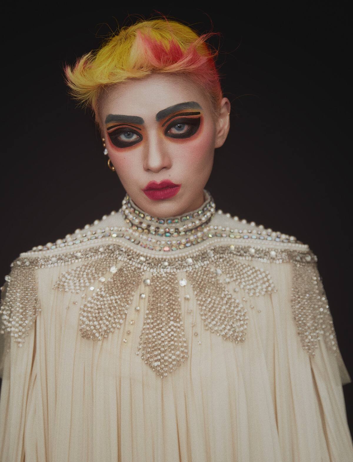 從學生時代我就很討厭體制,覺得為什麼大家都是同一種模樣?當時還做了很多叛逆中二的事。兩年前,我還在當設計助理的時候,在臉書上被彩妝師 Fiona 發掘,與攝影師張芮合作首次彩妝作品,這是我出道的過程。韓國模特兒 Ga Young 讓我非常喜愛,她身上散發出強大吸引力,能同時駕馭商業與藝術作品,太強了。如果要描述我對時尚的愛,我會說:去找到自我風尚吧,不要問潮流是什麼。風格是值得一輩子去追尋的事,多多觀賞與發問,總有一天你會找到自己的模樣。