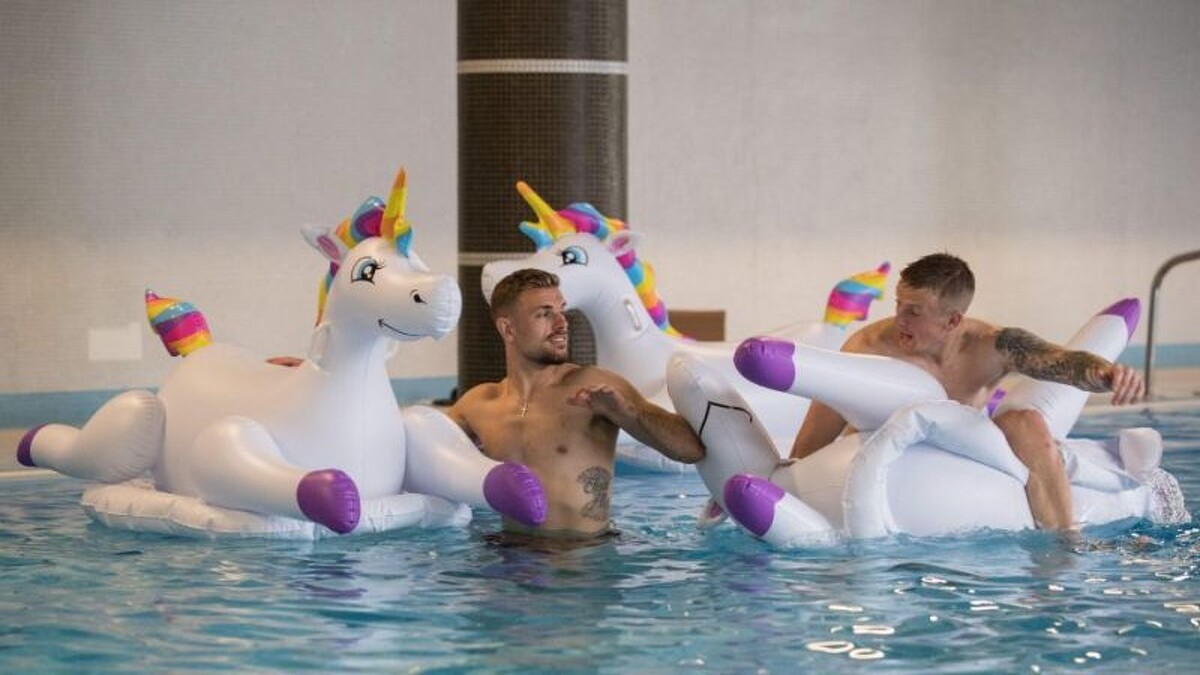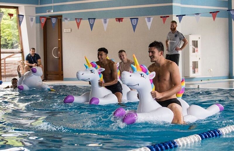 英國隊對上突尼西亞拿下好成績,苦戰過後休兵日大家坐上彩虹獨角獸,一起享受水上時光,反差萌也太討喜了~