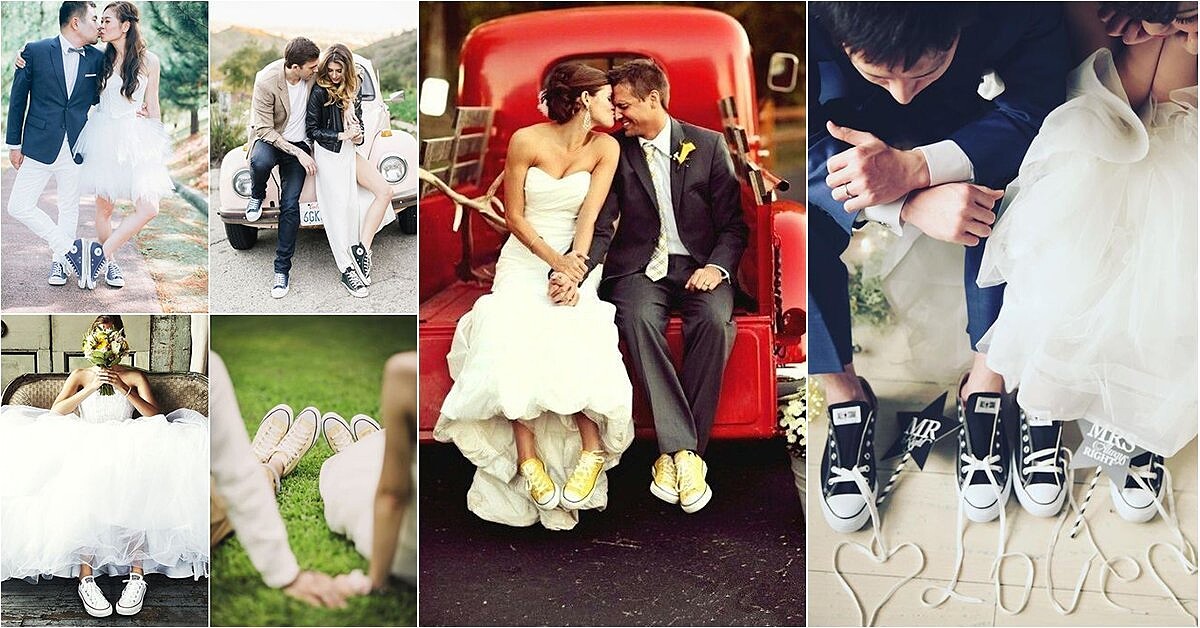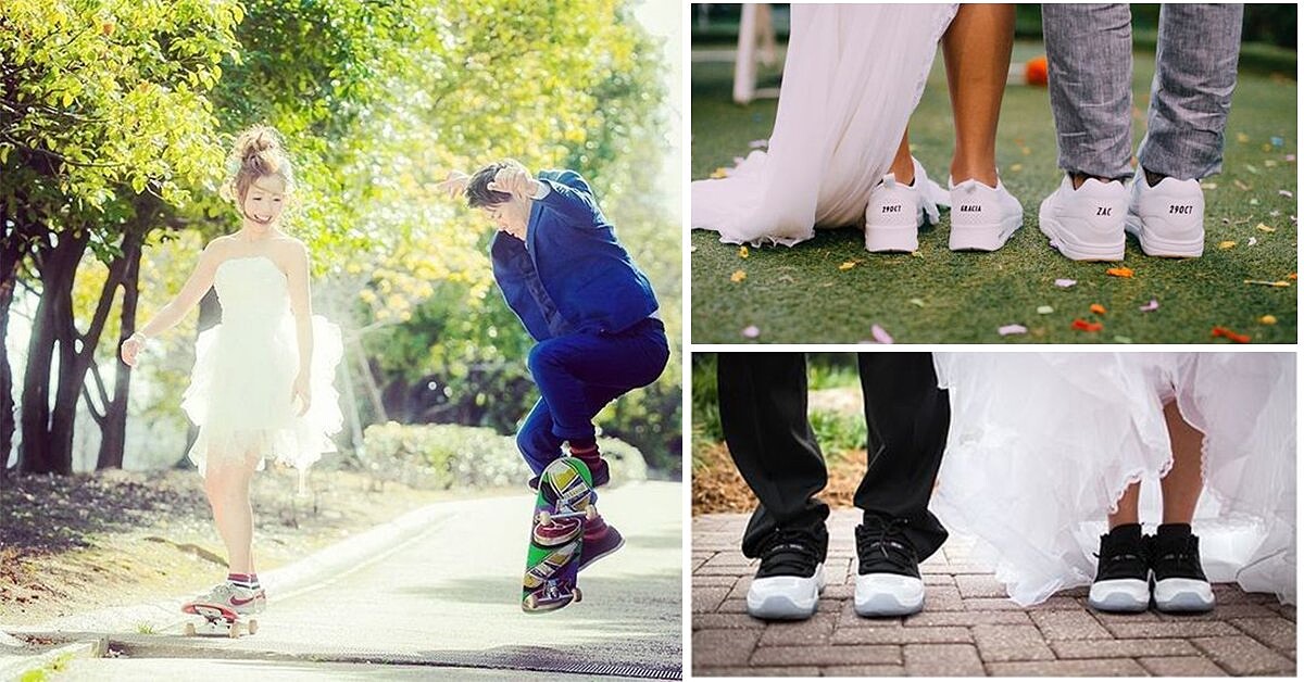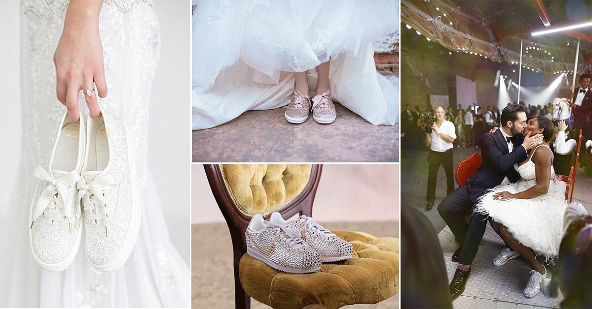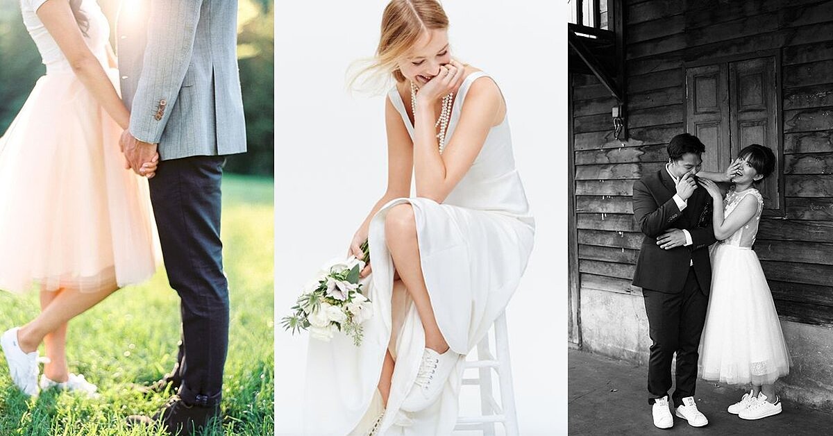 還沒找到命定的婚鞋嗎?許多女明星開啟了婚紗搭球鞋的潮流風格,想要跟得上這股風潮,就拋開櫃子上高雅的水鑽高跟鞋,套上這雙時尚又舒適的平底球鞋吧~一起做個最有婚禮態度的潮新娘!