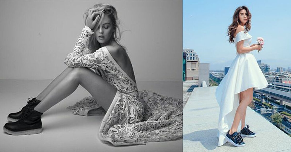 混搭優雅禮服和運動鞋,雖然聽起來衝突,但搭配恰當的話也可以很時髦!不過想要駕馭這種另類的風格也需要點勇氣~喜歡帶點性格的你可以嘗試看看!