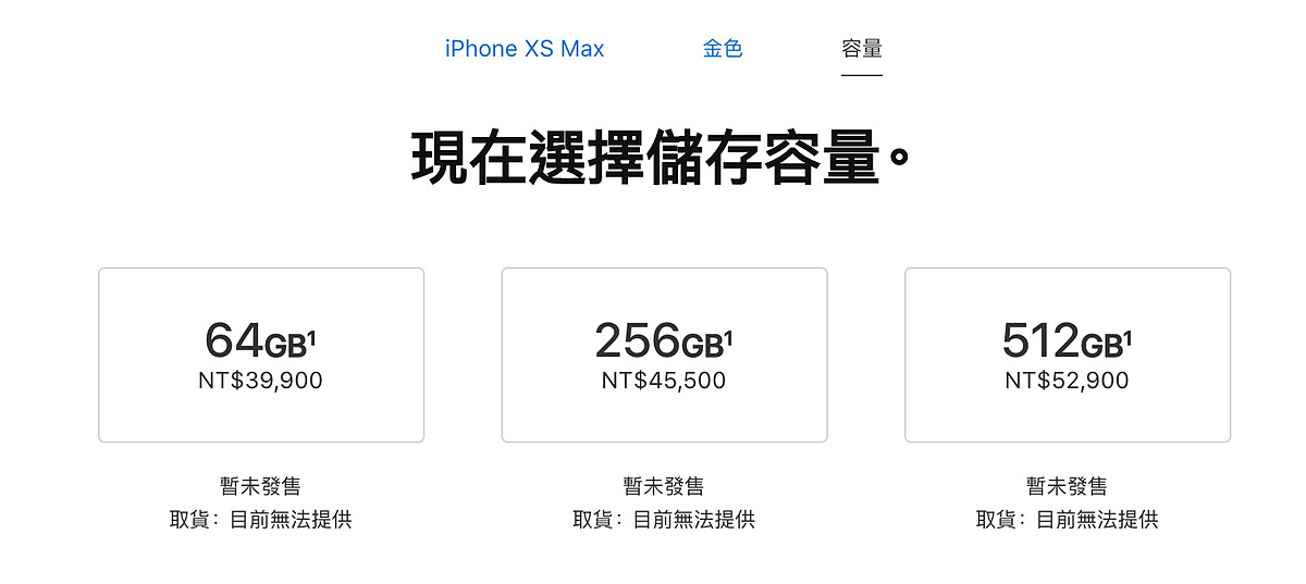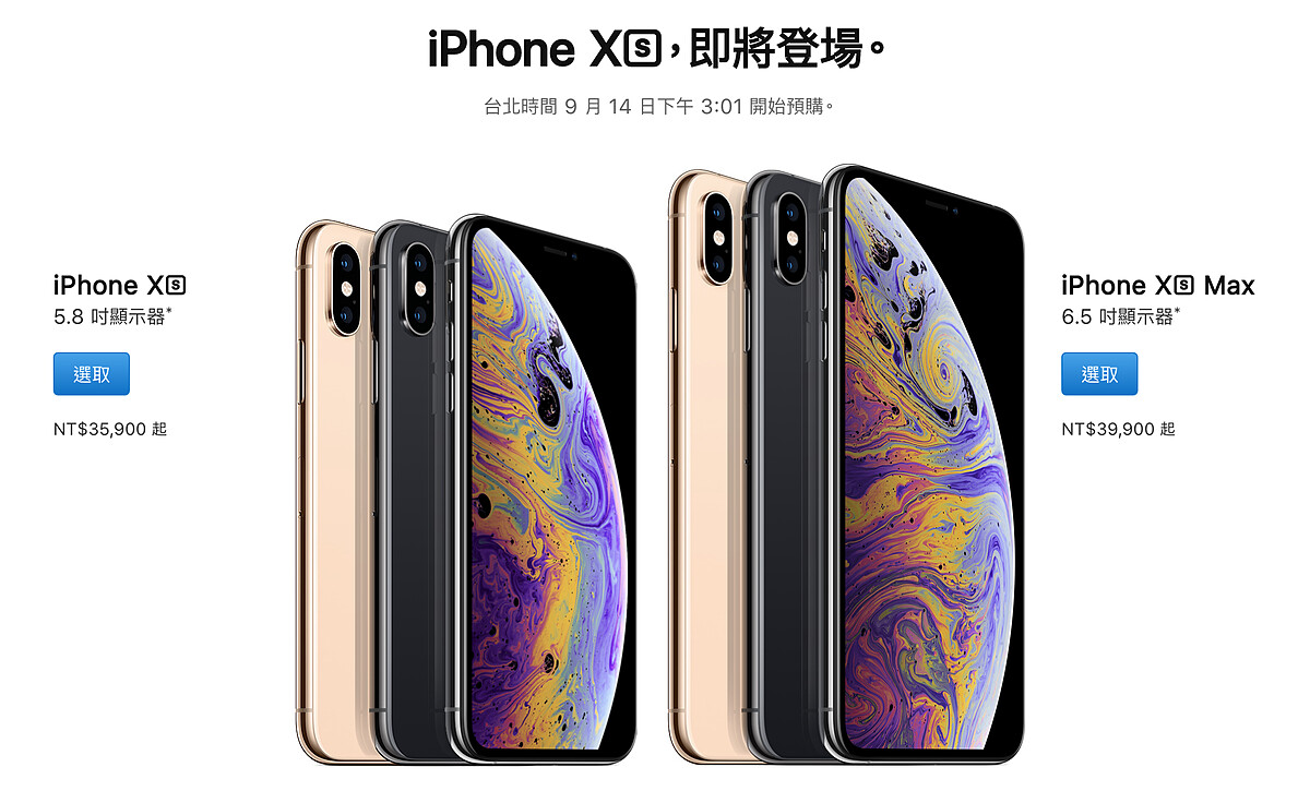 果然,就如官網早先搶先洩漏的一樣,這次推出的三款新機分別是iPhone Xs、iPhone Xs Max與iPhone XR,Xs的系列容量分別有64GB、256GB、512GB,512GB是 Apple 歷來最高容量的 iPhone,顏色有太空灰、銀色、金色,5.8吋的iPhone Xs的價格從999美元(NT$35,900)起跳,6.5吋的iPhone Xs Max價格從1099美元(NT$39,900)起跳,另外平價版iPhone XR則有黑色、白色、紅色、黃色、藍色、珊瑚色6種顏色,容量有64GB、128GB和256GB,售價則是749美元(NT$26,900)起。
