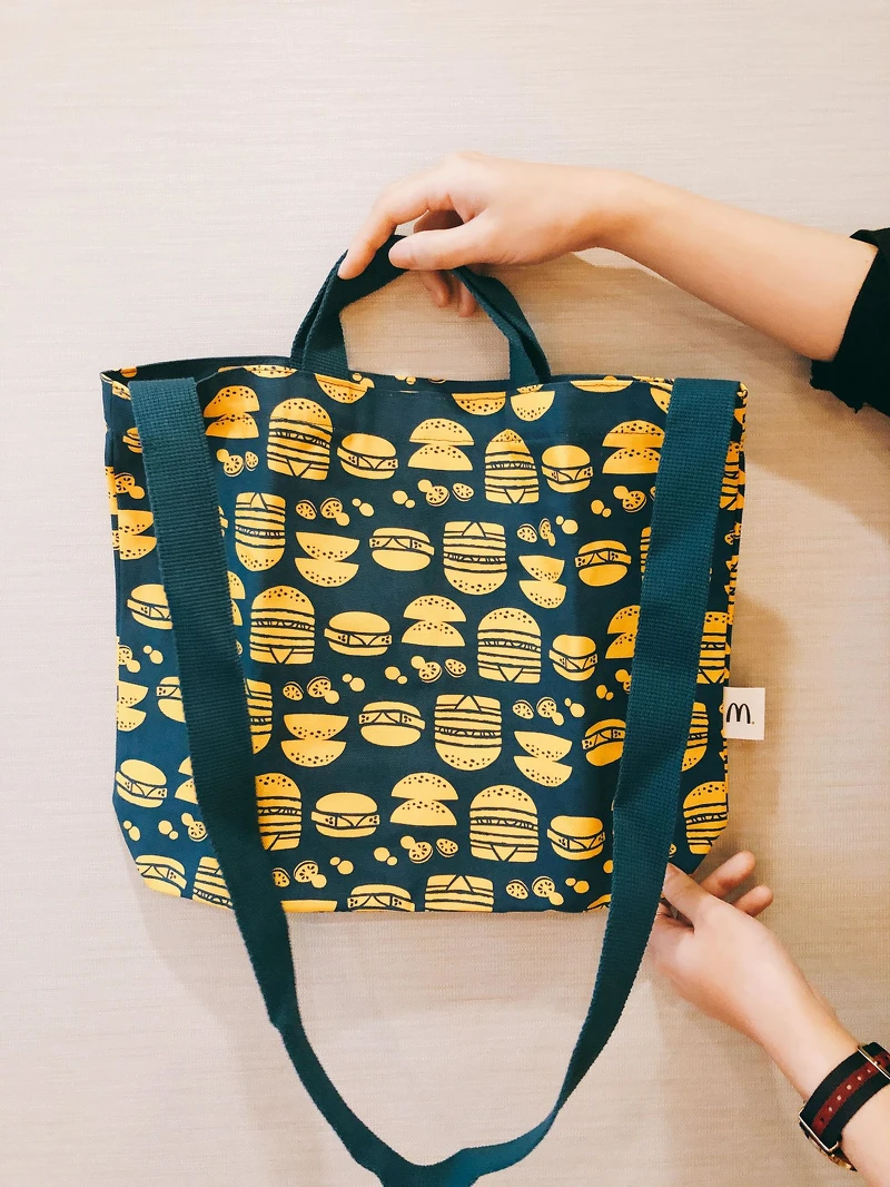 其中「漢堡藍」以精品靛藍色為底,將大麥克層層堆疊的豐富美味化為跳舞的階梯,而「薯條紅」則以原色帆布袋點綴經典正紅色,將薯條與派對的繽紛彩紙結合,重點是這個百搭包可背、可提兩用,全程100%台灣設計、手工製造,大小還能裝下約12個大麥克呢!