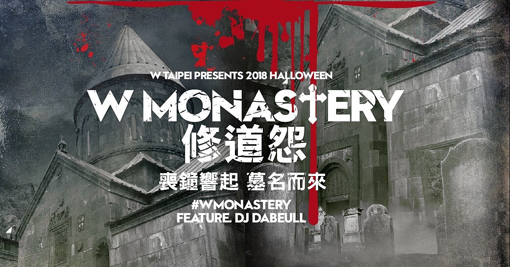 台北W飯店今年萬聖節再次結合年度話題,在2018年10月27日晚間9點至深夜,將於十樓WOOBAR酒吧舉辦以修道院墓園為主題的-「修道怨」W Monastery狂歡派對。