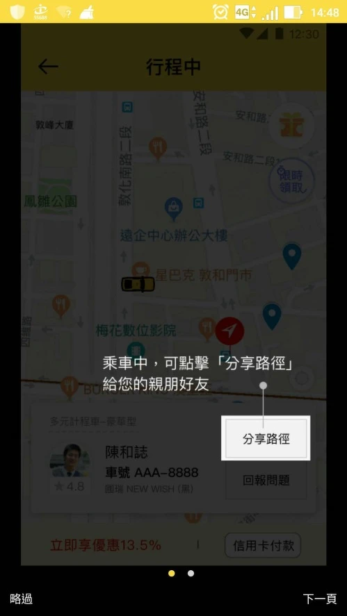 為了使親友放心,上車後可以使用55688APP中的【分享路程】功能,只要親友也有下載55688APP,就可以把他們加入好友,即時分享車子的地點及路程,讓親友可以掌握您的所在位置。