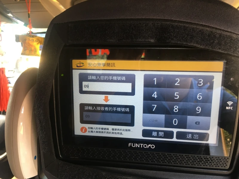 乘客可以透過車內互動小螢幕使用免費簡訊功能,只要輸入自己跟親友的手機號碼,系統就會免費發送簡訊給親友,告知你的搭車時間與計程車車牌號碼,對於女性婦幼乘客及夜歸的乘客來說,是一項非常貼心又安心的服務。
