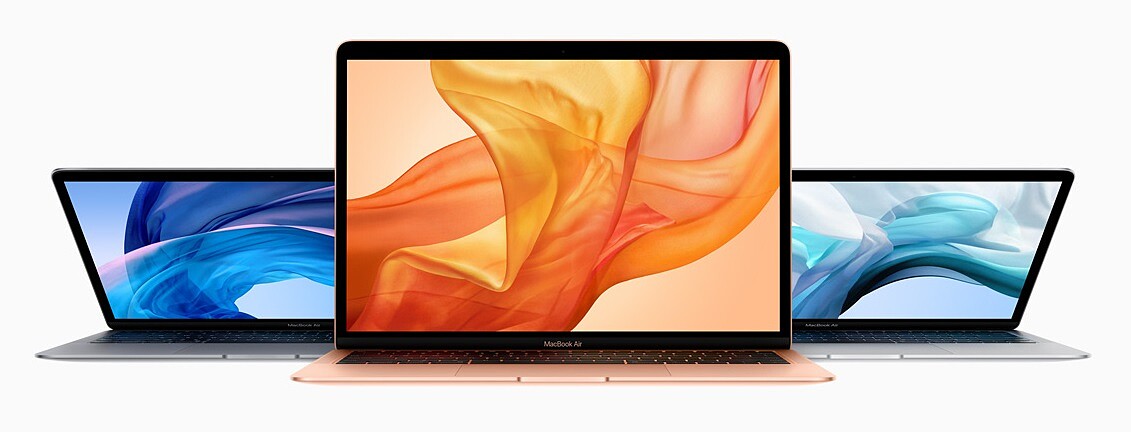 新版MacBook Air筆電擁有金色、太空灰色與銀色3色,具備 13 吋 Retina 顯示器、Touch ID與最新的處理器,另外還有配備了 Apple 設計的鍵盤、寬闊的力度觸控板、更快速的 SSD、寬廣的立體聲、Apple T2 安全晶片與 Thunderbolt 3,重量減為1.25公斤,更輕薄,讓使用者更方便攜帶,特別的是機身首度採用100%再生鋁金屬製成,可以說是最環保的Mac。預計將於11月7日上市,起售價為NT$ 39,900。