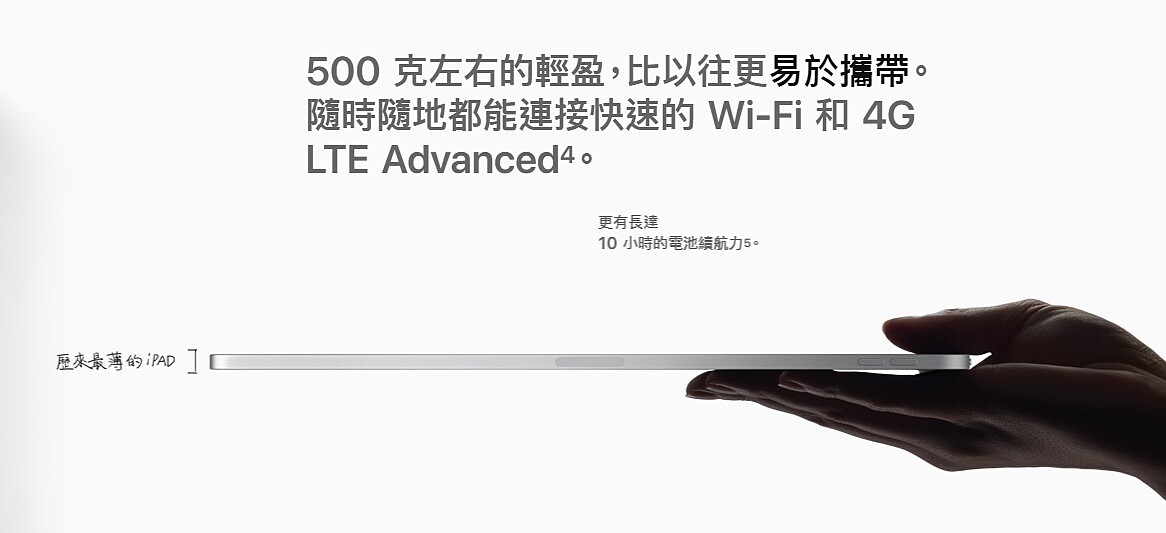 新一代 iPad Pro則是 iPad 問世以來,最大的變革,將11 吋與 12.9 吋 Liquid Retina 顯示器的畫面延伸至 iPad Pro 的邊緣,並整合 Face ID,只須看一眼,就能以安全的方式解鎖,並提供全新 USB-C 連接器、Gigabit 等級 LTE,以及最大高達 1TB 的儲存空間,分別有銀色與太空灰,11 吋 iPad Pro Wi-Fi 機型售價 NT$ 26,900 起;12.9 吋 iPad Pro Wi-Fi 機型售價 NT$ 33,900 起。
