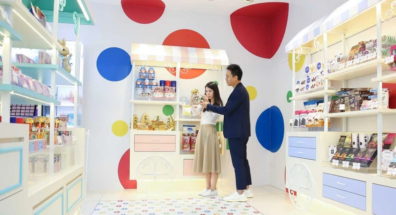 特別的還有「糖果屋」,全區以粉色系少女風格打造,從天花板延伸到兩側牆面有大面積的圓點設計,地板則使用花瓣造型的地磚相為呼應,以3台馬車造型作為陳列設計的專櫃,將糖果當成飾品,分別擺設「歐美熱銷」、「不敗肖像」,以及「日韓獨家」三種商品類別,共有18個歐美日韓的經典品牌、63支全新商品。