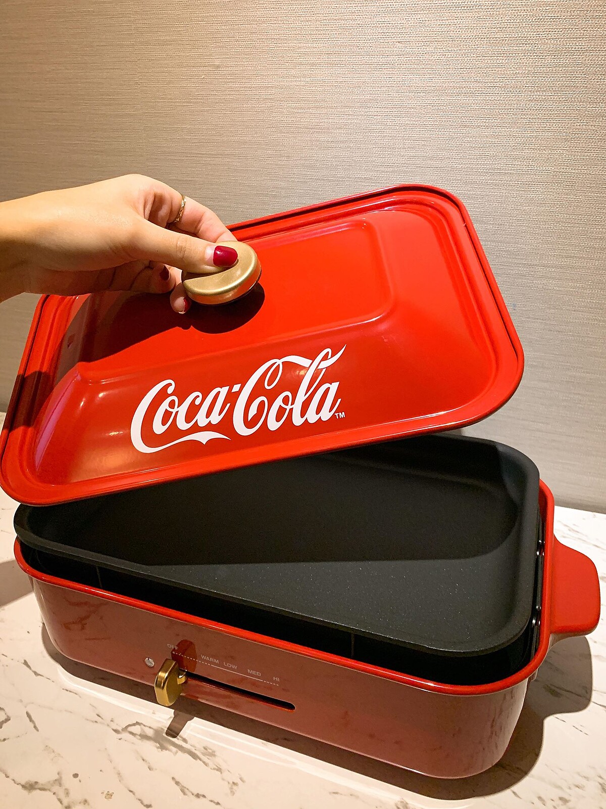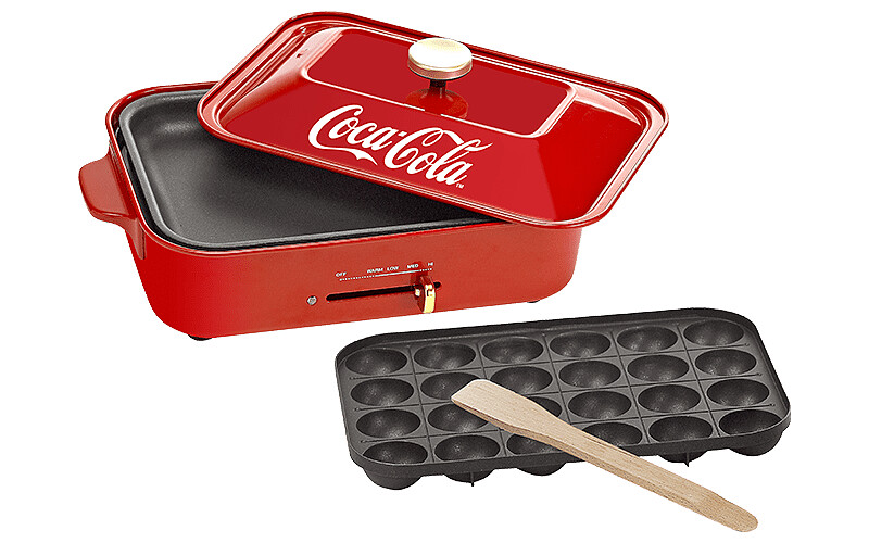 這次的可口可樂與Bruno聯名包括多功能電烤盤、萬用油炸鍋、雙層便當盒以及食尚小烤盅,經典紅色躍上產品外觀,不只為廚具增添潮味,更可以讓做菜空間畫龍點睛,其中多功能電烤盤含有章魚燒烤盤,自己在家就可以享受章魚燒美味。