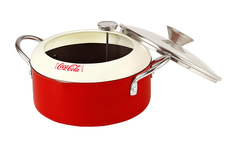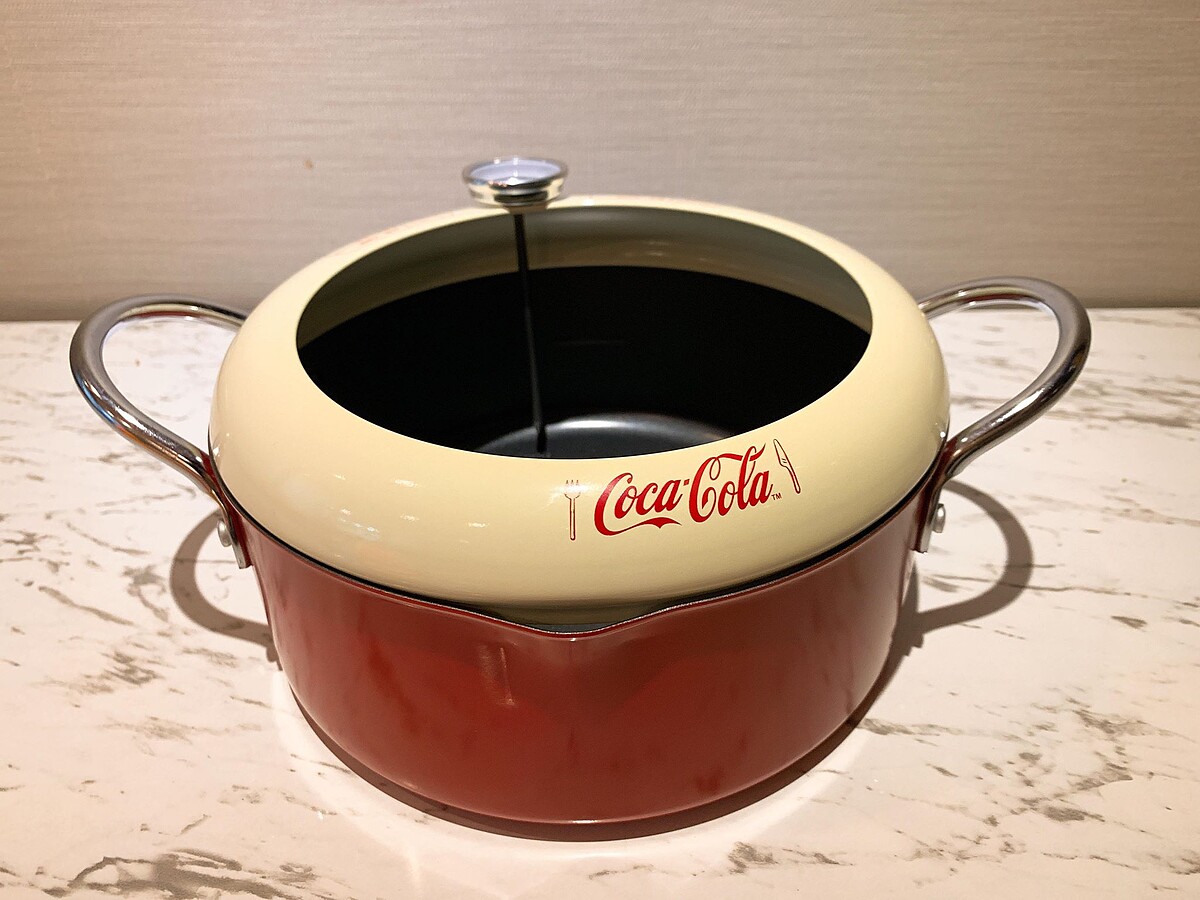 2. 「可口可樂」萬用油炸鍋:鍋身/把手/防噴油蓋為碳鋼材質;玻璃蓋為玻璃、不鏽鋼材質,鍋身直徑20公分x高8.5公分;鍋蓋直徑20公分,共1,500個,每個所需點數180點