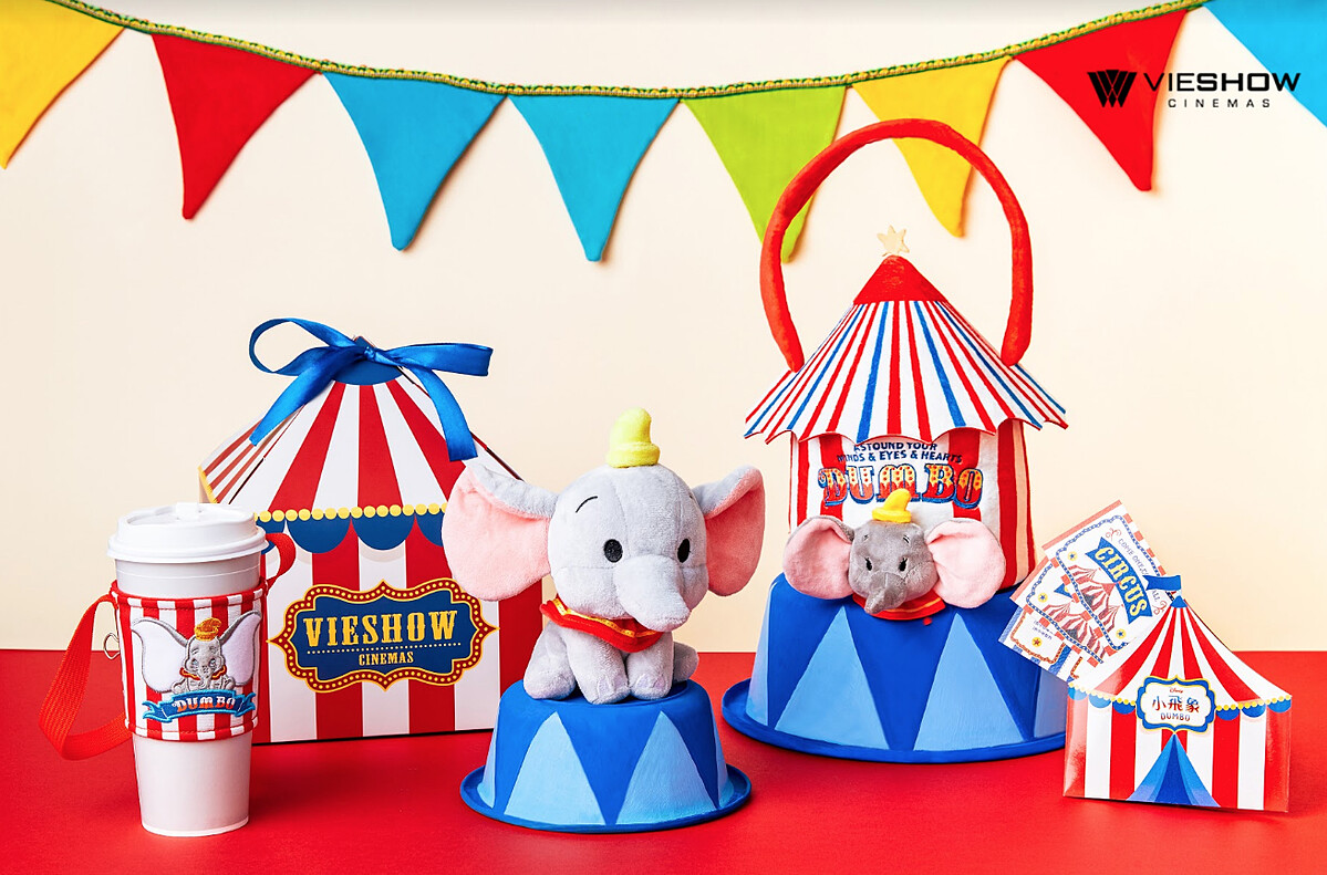 特別以馬戲團為主題,小飛象爆米花提袋是以立體的帳篷圓頂蓋子與小飛象玩偶為設計,毛茸茸的質感,讓人無法招架;而杯套除了紅白相間的馬戲團元素,還有精緻的電繡圖案,因應環保的趨勢,可以隨身攜帶使用,兩款商品僅台灣獨賣,就連出國也買不到。