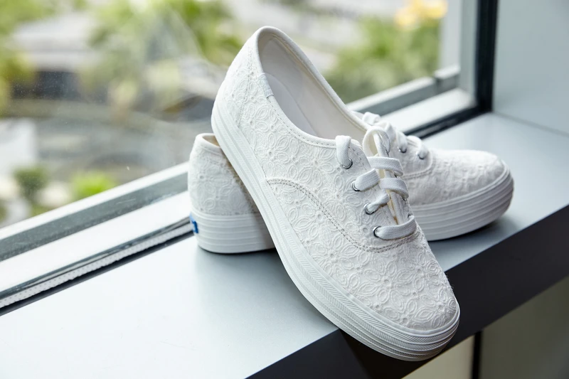 除了延續去年爆夯的老爹鞋持續發燒之外,鞋櫃裡一定要必備一雙一年到頭都熱潮不減的「小白鞋」,春夏推出優雅的蕾絲布面,搭配穿搭感覺更加輕盈!