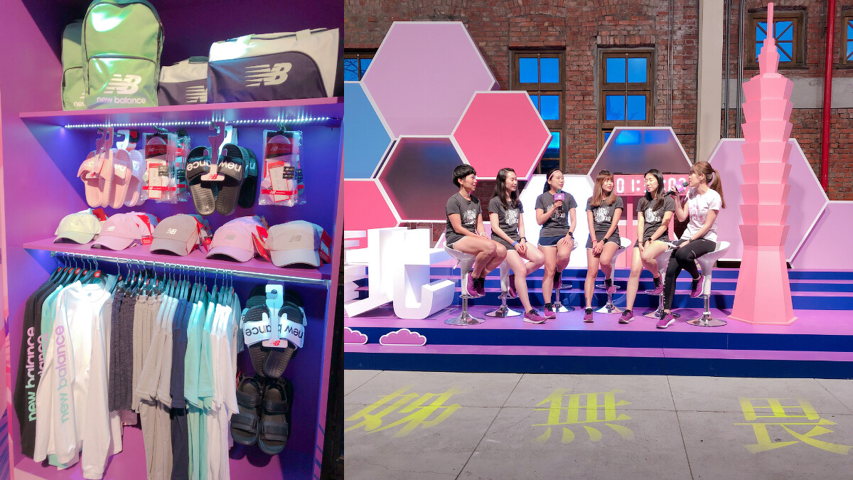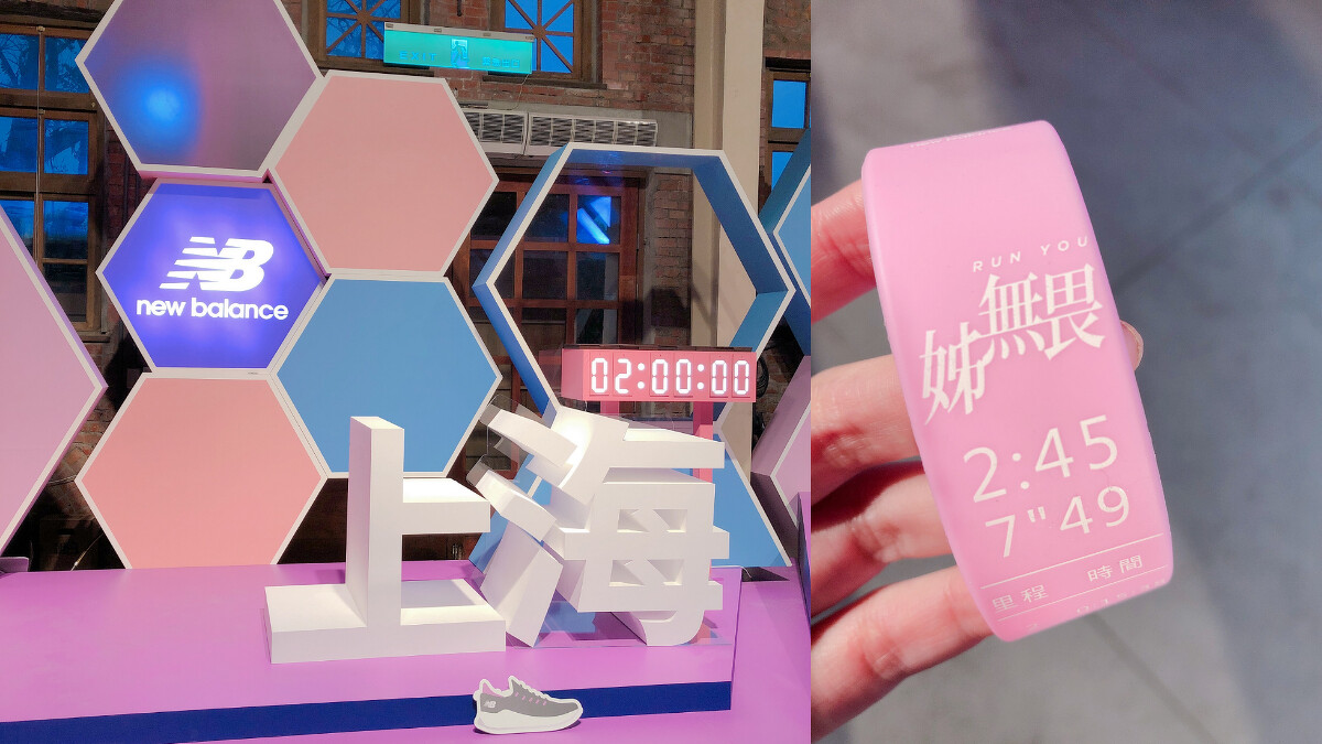 這次「New Balance 姊無畏互動展」分為5大區,除了提供參賽者現場提領物資之外,還有不能錯過的跑者姓名牆,賽事指定鞋款專區、PACER配速區與亞洲三大賽事「跑向世界區」,每個角落都能讓妳拍出IG美照的粉嫩設計,趕在週日開跑前一定要親自來體驗一波!