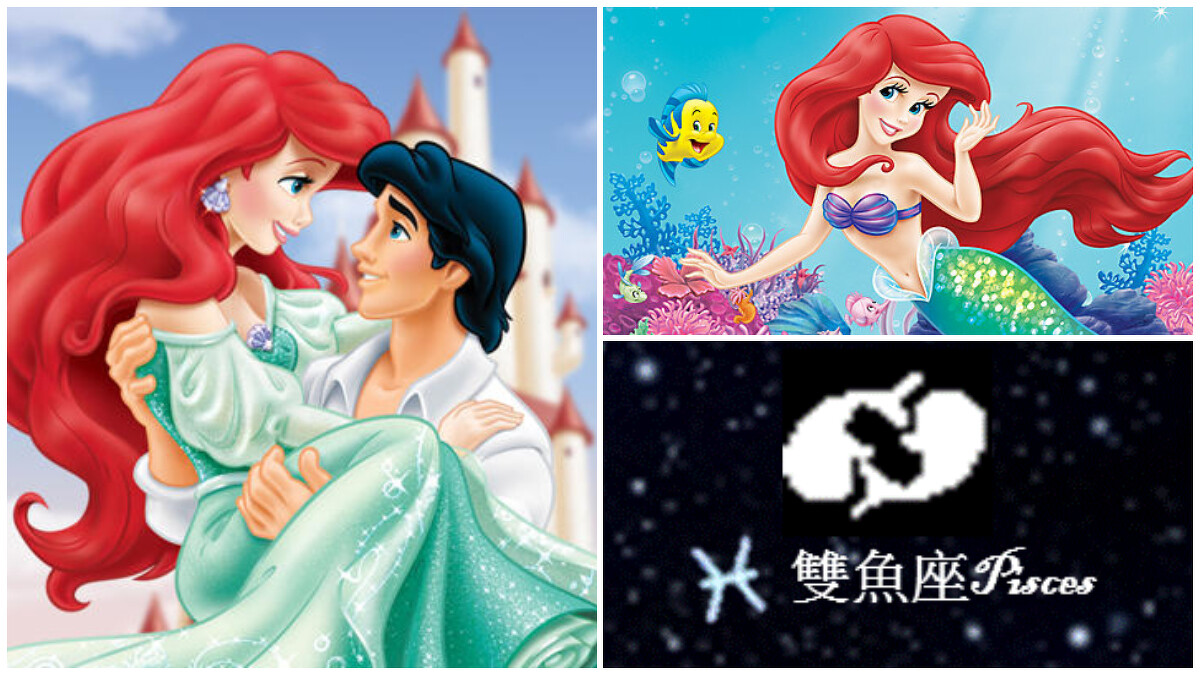 一直生活在海裡的艾莉兒,一直幻想人類的生活很美妙,甚至為了愛情犧牲自己的聲音,只為了換取雙腳可以生活在陸地上,就像雙魚座一樣浪漫、天真、清純。