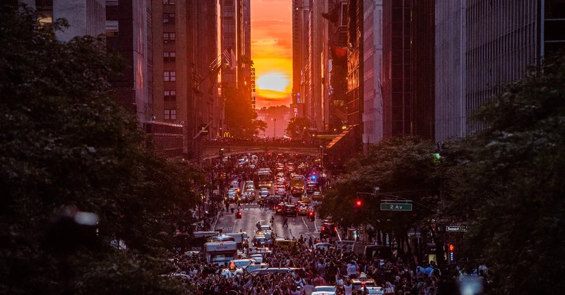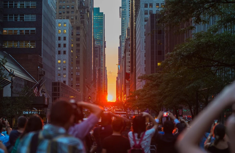 「曼哈頓懸日」是指在美國紐約曼哈頓出現的自然現象。 由於曼哈頓街道大多呈棋盤式佈局,在每年的5月底到和7月初,日落時陽光將灑滿曼哈頓的所有的東西向街道,呈現一幅壯觀的景象,時間長達15分鐘。 而在每年的12月~1月初,這樣的景觀將伴隨著日出而出現。