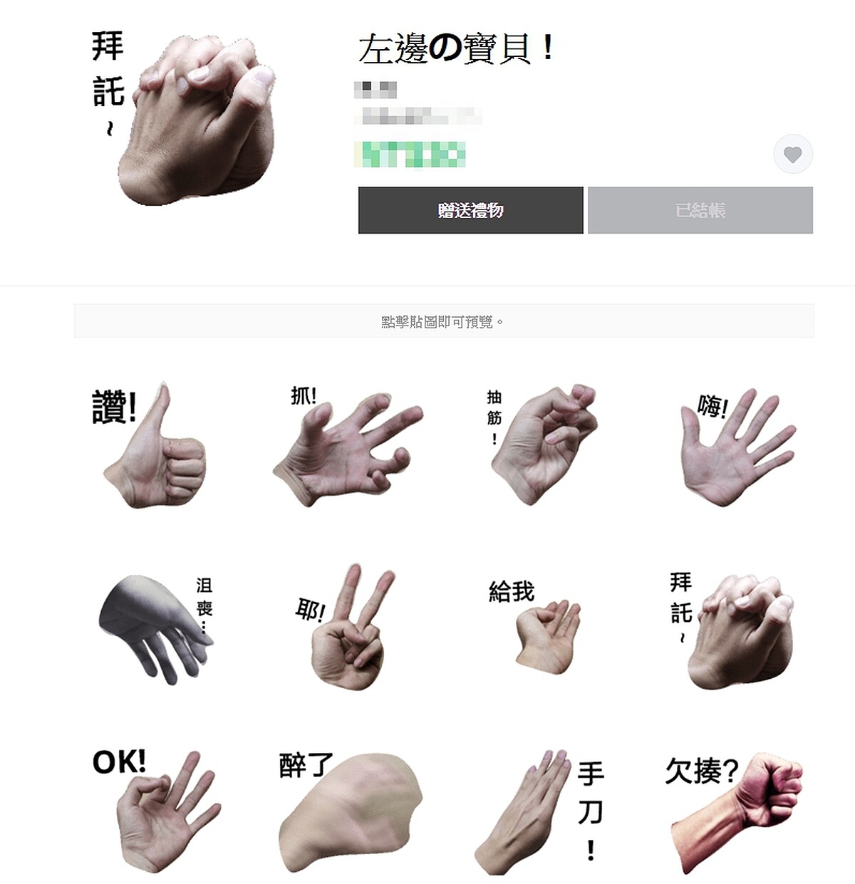 竟然有人把手勢也做成貼圖了?OK、讚、拜託,這種簡單的手勢用語,在日常生活中很常出現,放在貼圖裡也意外地蠻適合的。