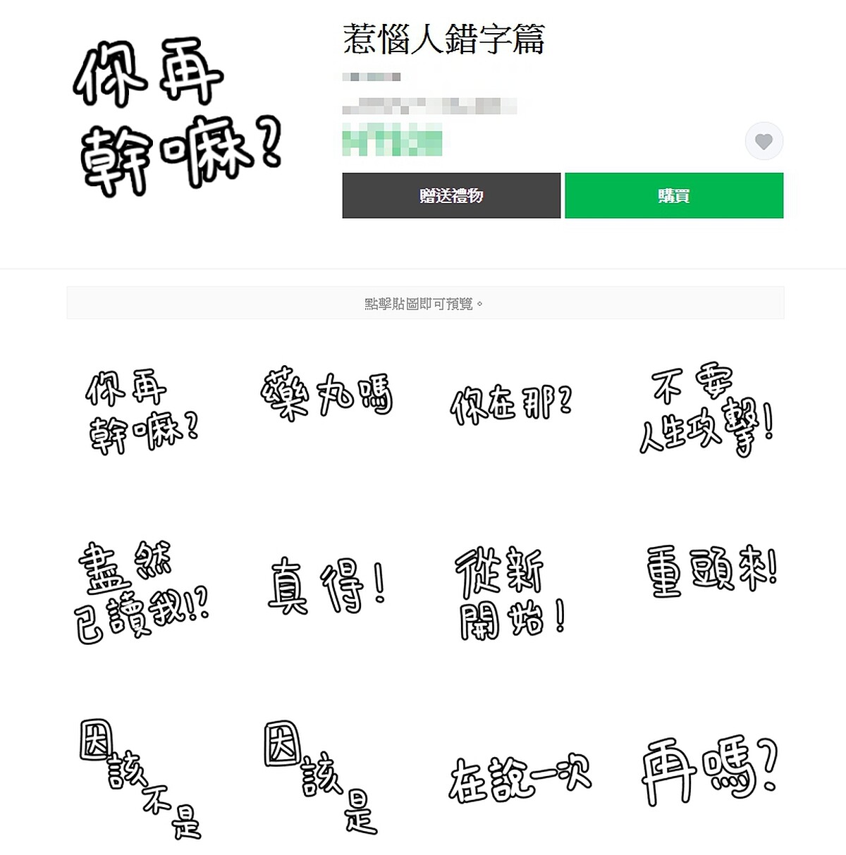 強迫症千萬別來啊!這款貼圖根本就是在挑戰強迫症的底線!「在、再」,「竟、盡」,「因、應」…不行了,小編要受不了阿~