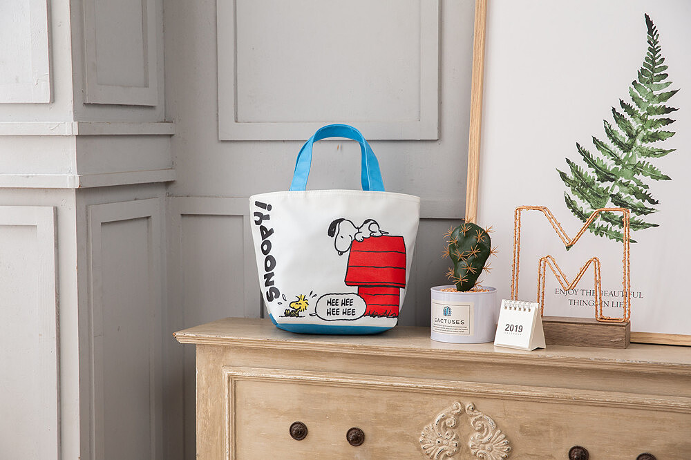 袋身以簡約的雙面設計,配上經典SNOOPY、紅色狗屋和胡士托,這款輕便手提袋,出門在外能任何小東西都能輕鬆裝袋,絕對是實用小物之一!