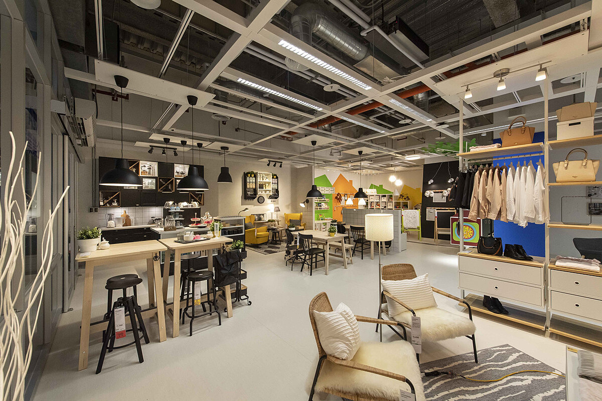 IKEA企業業務(IKEA Business)入口也位於捷運通道旁,顧客可直接進入諮詢中心,由於大台北多數地區是住商混和,很多住宅一樓都是店面,現場提供包括咖啡店、服飾店等不同商業空間的佈置靈感,讓有開店計劃的顧客看見更多空間規劃的可能,也讓住宅的門面有更美好的設計。一路從佈置諮詢、訂購下單、專人取貨、運送到安裝服務,IKEA企業業務都能一手包辦。