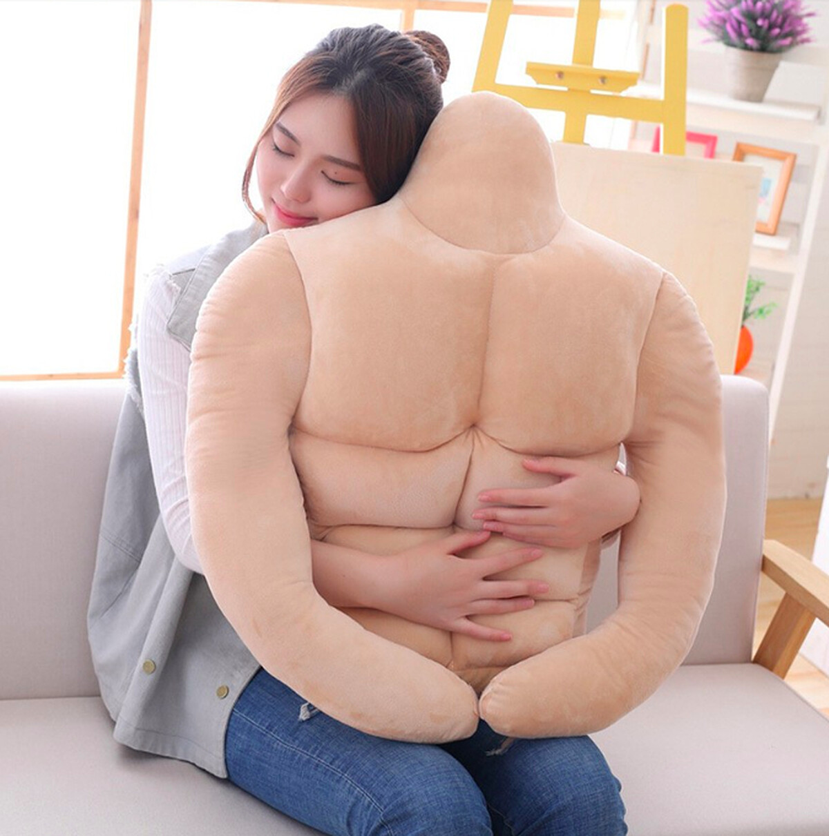 販賣許多新奇小物的韓國網站Funing Factory,近期推出「男友抱枕」,說明簡單明瞭:「當你想念男友時請擁抱」。把大家夢寐以求男友的身材變成抱枕設計,有厚實的胸膛、六塊肌、背肌與手臂,絕對讓你大大滿足。