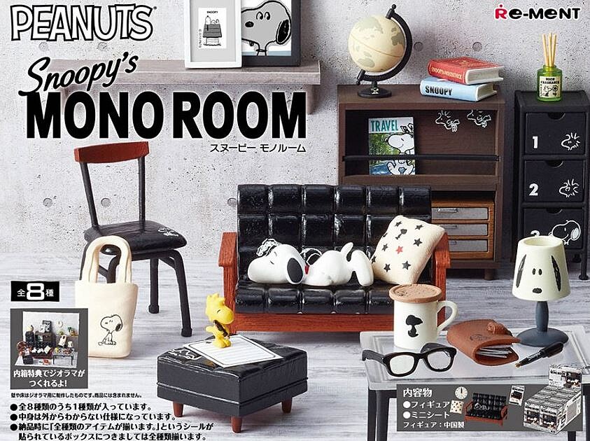 日本知名品牌RE-MENT公司專門推出各種超萌盒玩,這次以超人氣卡通史努比SNOOPY為主題的SNOOPY’s MONO ROOM,質感精緻到史努比控們要暴動啦!這次以黑與白的單色傢具為主滿滿工業風感,再配上深色木頭的收納櫃,原來史努比房間這麼時髦!仔細看看每個傢具裡都藏有史努比的蹤影,從沙發、書櫃、甚至連馬克杯、筆記本都有史奴比!一次推出八種盒玩一起來看看吧~