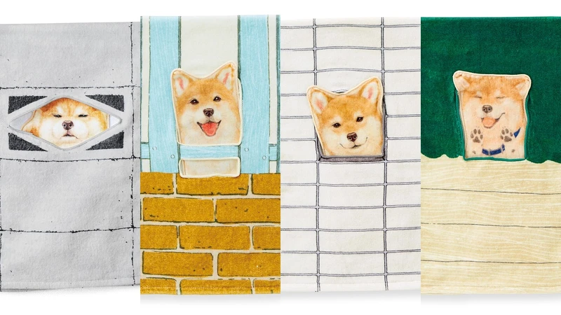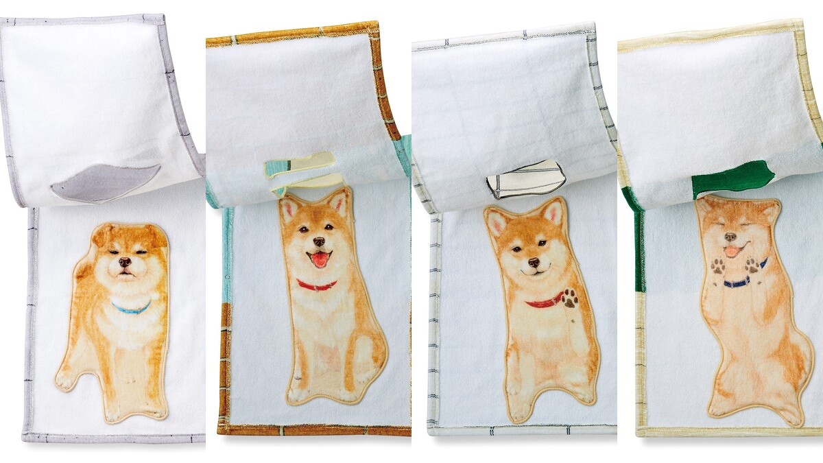在毛巾開口處露出柴柴的臉,賊賊的柴柴看起來就像是想要邀請你一起玩的模樣~雙層毛巾打開後更是露出整隻軟萌柴犬!