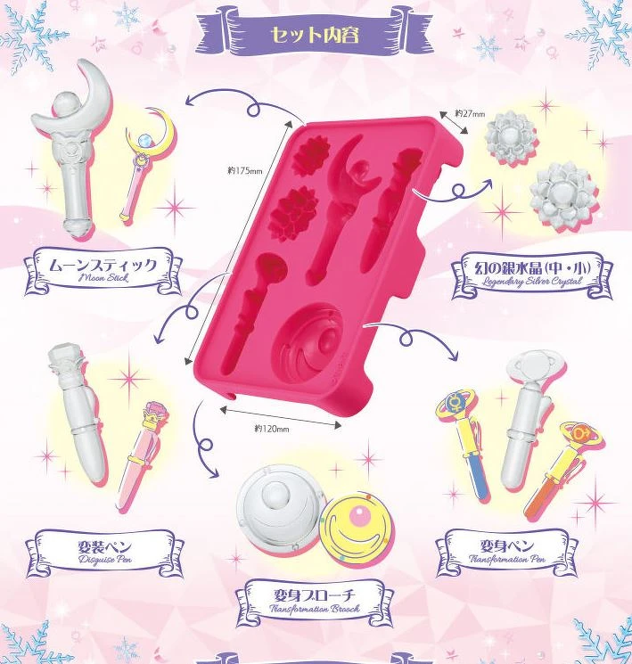 美少女戰士製冰盒兩款共有10種圖案,分別可以製作出銀水晶、時空之鍵、月光公主權杖和月光寶盒…...等等不同圖案!讓你也可以變成美少女戰士一員~