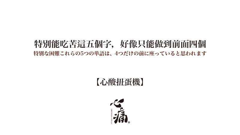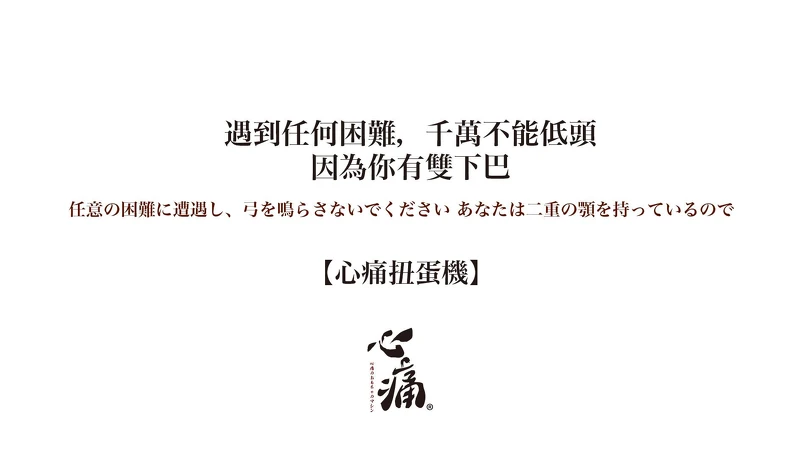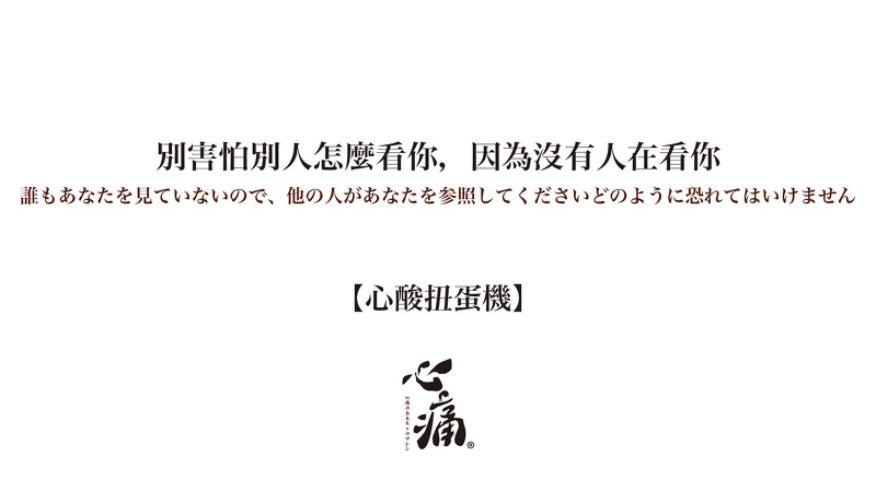 聽過「心痛扭蛋機」嗎?其實是一間扭蛋專門店!許多人都喜歡蒐集各種療癒系扭蛋,但「心痛扭蛋機」超不一樣,除了有五花八門的扭蛋以外,有一台外觀就寫著大大的「心痛」,還註明拜託不要轉,否則後果自負!至於扭蛋裡面究竟是什麼東西~就交給勇者們親自體會啦!「心痛扭蛋機」的粉絲專業也推出了一系列負能量語錄,看完只覺得人生更灰暗了阿,來看看有沒有戳到你心坎裡~