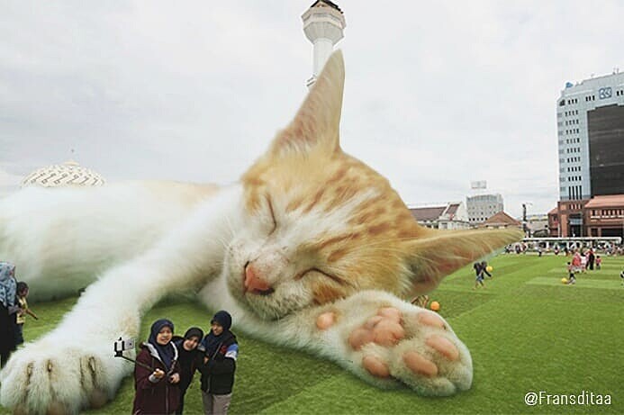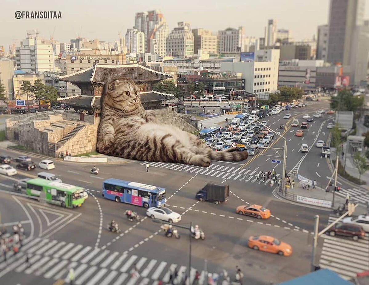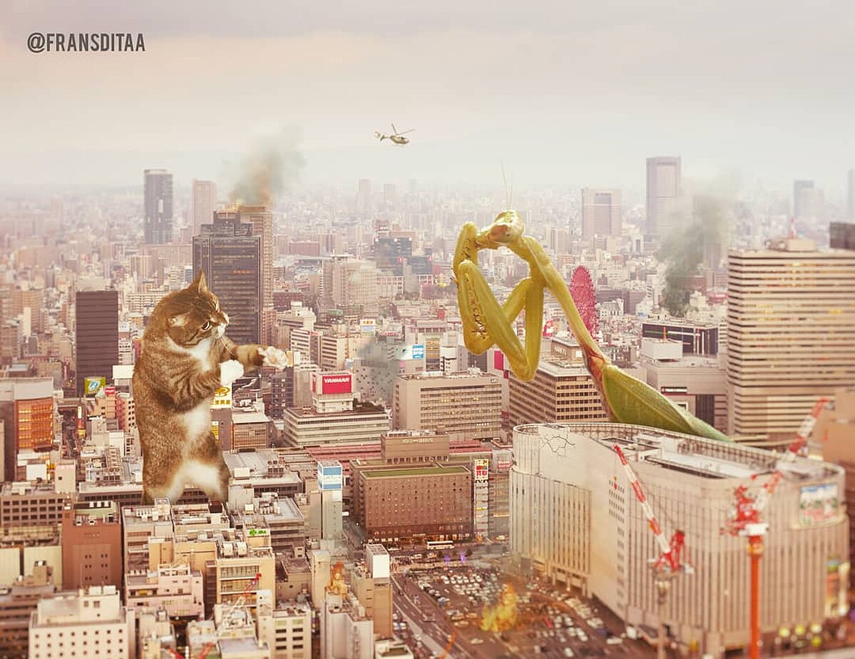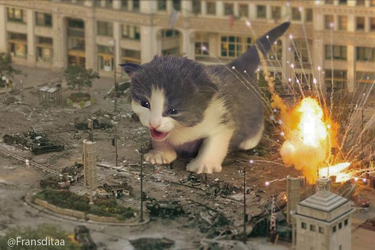 每當為工作煩悶苦惱,只要回家一看到家裡貓咪撒嬌翻肚的模樣,身心靈一起被療癒~外國研究也指出,當飼主遇到痛苦時,貓咪能幫助人達到療癒效果、釋放壓力。但你有想過貓咪征服地球會變成什麼模樣嗎?印尼有一位3D動畫師fransditaa以日本經典怪獸「哥吉拉」為發想,將貓咪也怪獸化變成一系列「喵吉拉」!貓奴們準備一起尖叫吧~