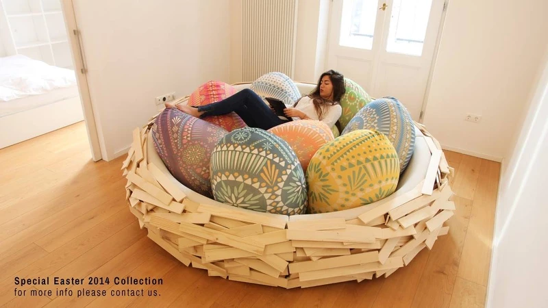 每天忙碌的工作下班、下課後拖著疲倦的身心,就像是倦鳥歸巢一般!國外的傢具業者就以此為發想,「 Giant Birdsnest鳥巢沙發」因此而誕生!回到家後很常躺在沙發,想說休息一下就好~但如果擁有一個「鳥巢沙發」就不只是休息一下,應該會不小心一覺到天亮~
