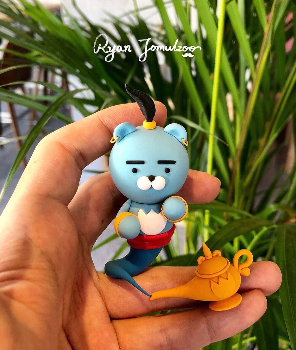《阿拉丁》電影的高人氣到目前熱潮還持續下去,韓國藝術家ryan_jomulzoo將KAKAO FRIENDS的萊恩Ryan化身成《阿拉丁》藍色的神燈小精靈,創作出Ryan版神燈精靈,從頭上一搓頭髮、還戴上金手環與金耳環100%神還原,帶點傻萌感的神燈精靈~萌的威力更是破表,讓人好想收藏!