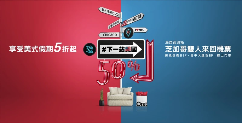 而近期Crate and Barrel推出「下一站美國」主題月活動,全店超過5000項商品全面享有折扣、最低5折,些許品項甚至比美國當地更優惠,快點去挑選質感家具、提升居家空間品質吧!