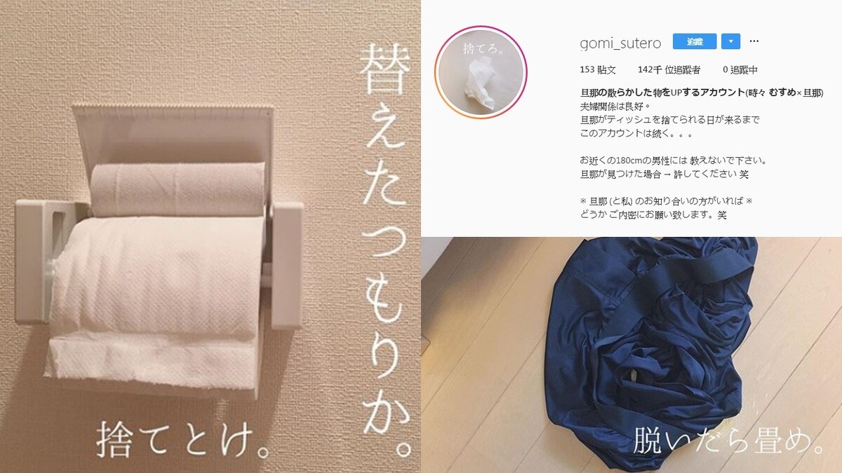 最近受到網友廣大討論的IG「gomi_sutero」,不是什麼網美版面,也看不到任何時尚美照,多的卻都是居家生活寫真,但是仔細看看,每一張不是衛生紙、襪子亂丟,就是家裡的凌亂景象。