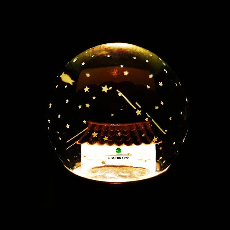 最大的亮點是這間星巴克還可以開燈,將水晶球倒過來之後亮片們向滿天的流星般緩緩掉落超級美!