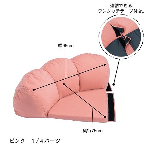 最厲害的是,這款沙發具有魔鬼氈設計,可以將1/4圓弧沙發自由連接,可以變成一朵花的造型,或是加入延長坐墊成為橢圓形,屆時妳就能把整個人埋進去當「姆指姑娘」,保證在裡面耍廢、追劇、看書一整天,都不會想出來!售價4320日元(約新台幣1237元)~5940日元(約新台幣1701元)不等。