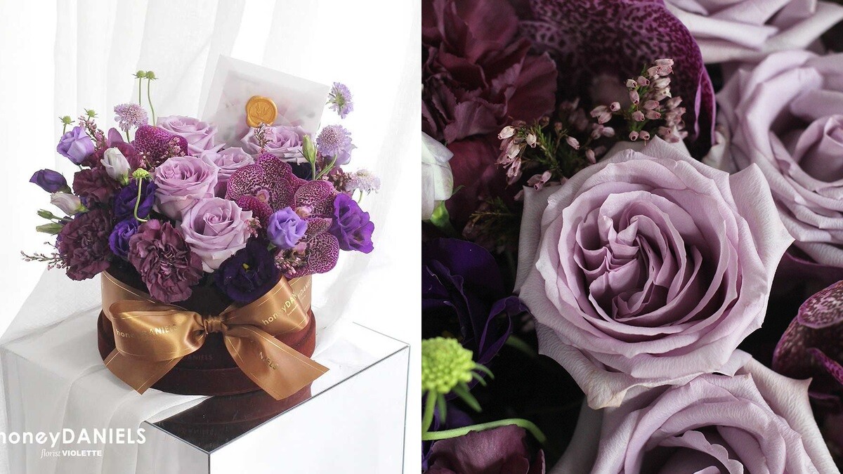 吟唱數萬光年之外的紫色星河。紫色繡球、海洋紫玫瑰、卡門紫色桔梗、馬醉木、紫松蟲與迷你紫追風,描摹戀人們如恆星守護般的愛情意念。
