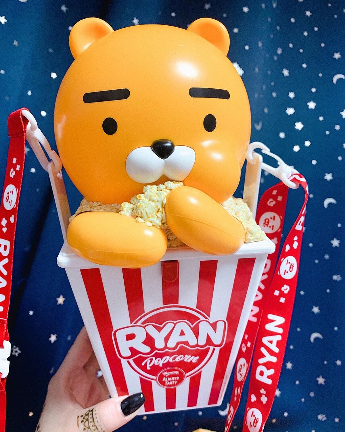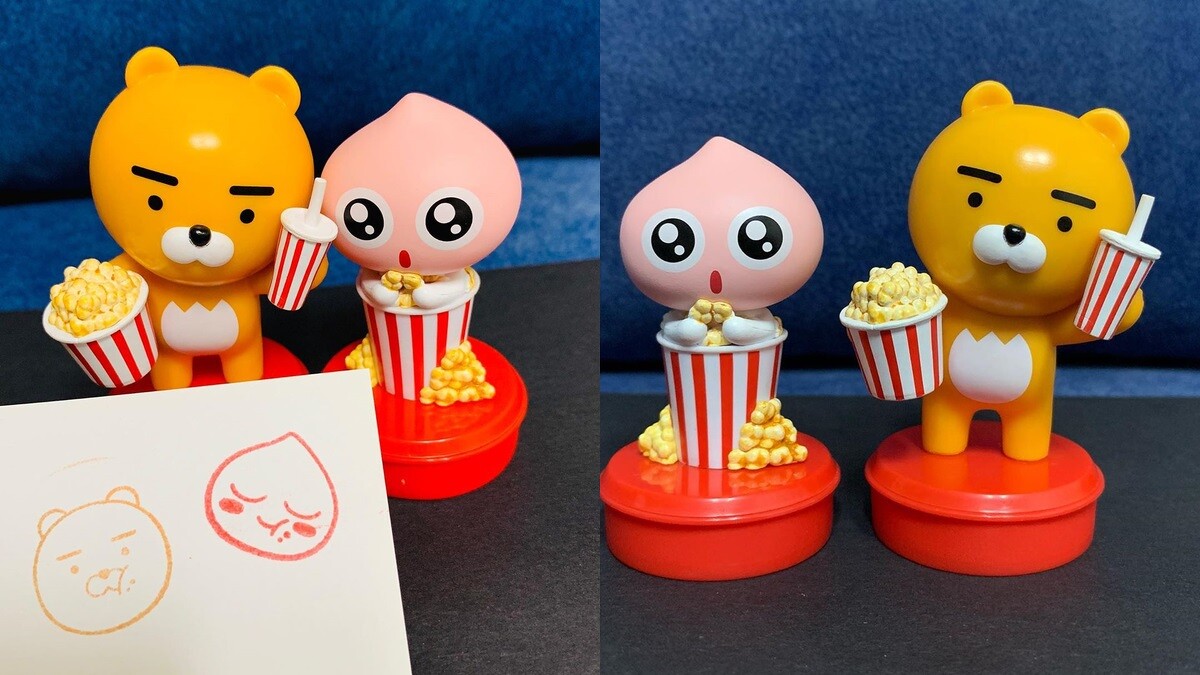 KAKAO FRIENDS與韓國樂天電影院合作推出聯名套餐,萊恩化身為爆米花桶與飲料杯,除了套餐以外,也可以單獨購買飲料杯或是爆米花桶!萊恩在偷吃爆米花的樣子實在是可愛到犯規~這款燒人的程度完全不輸遊樂園裡的爆米花桶阿!
