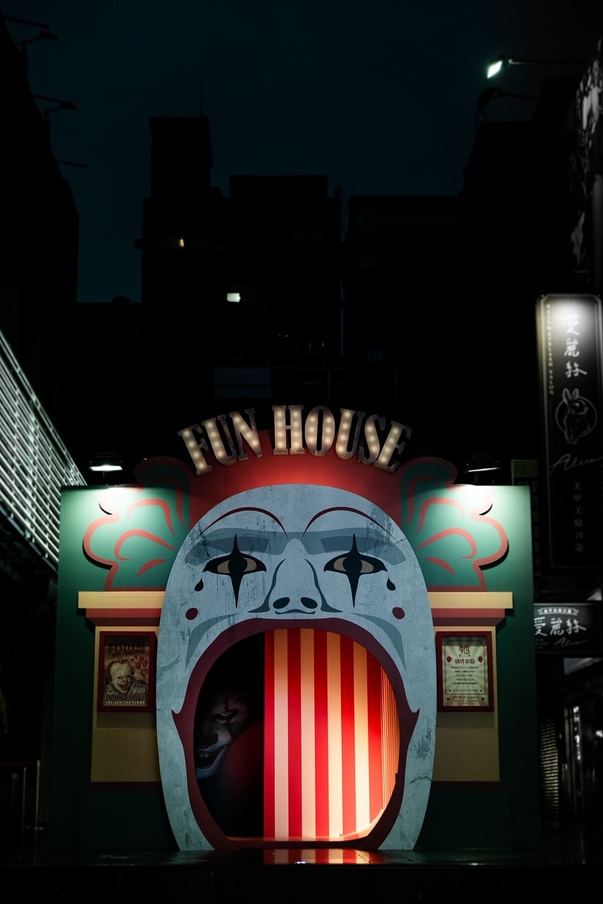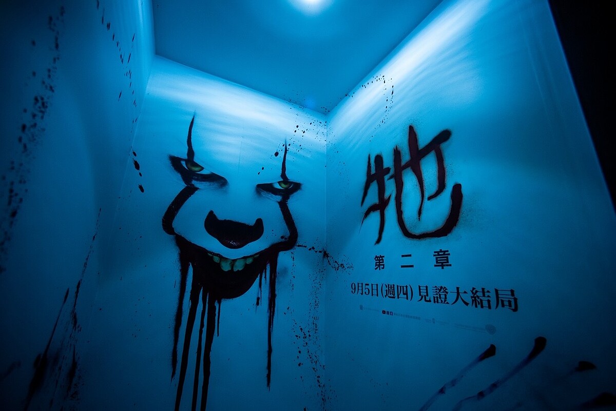 為了讓觀眾也能體驗片中小丑潘尼懷斯帶來的驚悚氛圍,電影公司特別在西門町熱鬧的樂聲戲院旁廣場與微風松高前各建構一座模仿電影場景的「破膽樂園」,讓各位可以進入屋內體驗小丑的邪惡意念,還能一睹歡樂屋的驚悚360影片,直接與小丑潘尼懷斯面對面。
