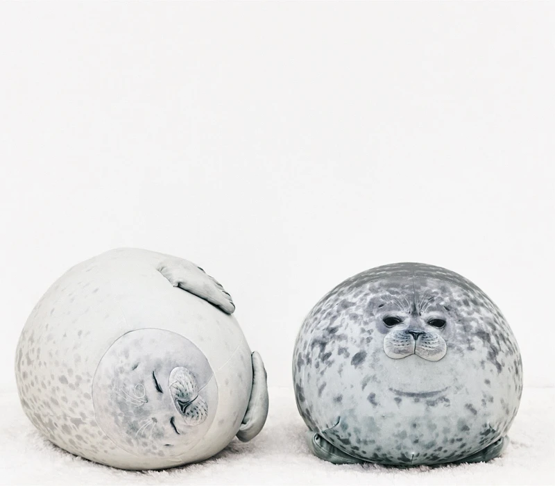 兩隻海豹抱枕,一隻瞇著眼睛露出超萌表情,另一隻則是擁有淡定表情的海豹!
