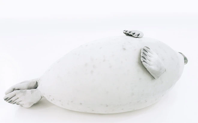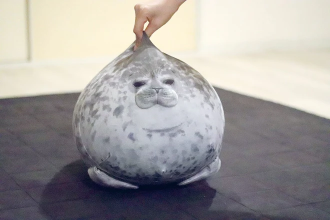 日本大阪海生館中有兩隻海豹「Yuki、Arale」因為模樣太可愛而成為網路明星,於是推出了幾乎是1:1大小的超巨大抱枕!